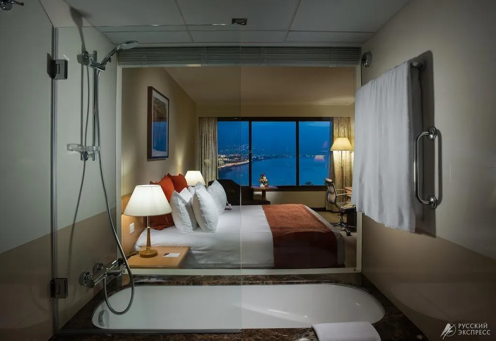 Ванна/душ, балкон/терраса (не во всех номерах), кондиционер с индивидуальным контролем, спутниковое ТВ, международный телефон, доступ в интернет, чай/кофе, мини-бар, сейф, фен, халат, утюг и гладильная доска, 24 часа room service