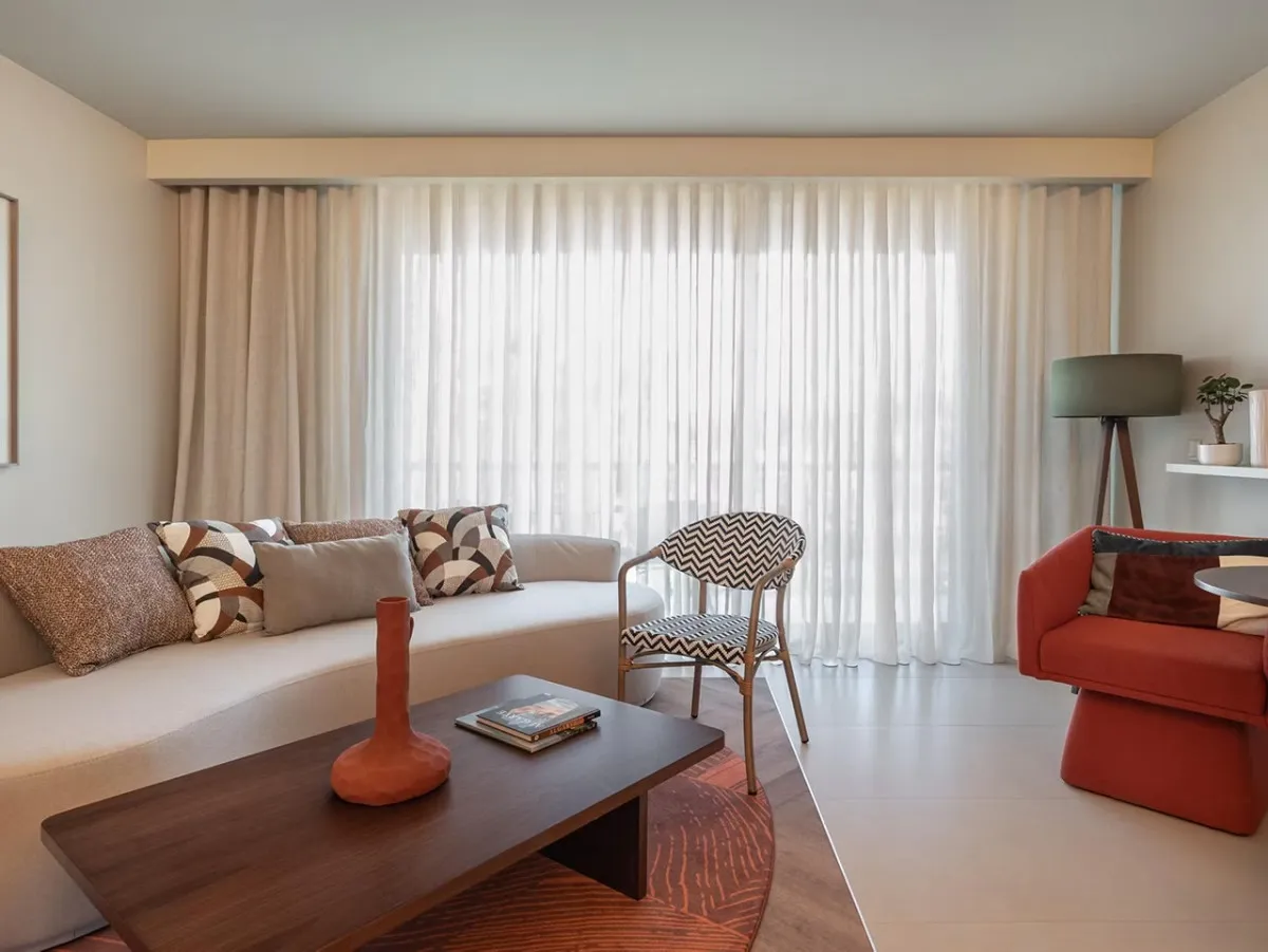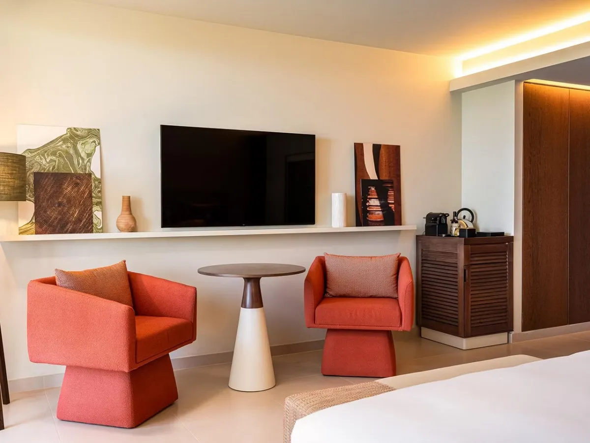 Просторные номера оформлены с акцентом на комфорт и элегантность. Из бара на крыше открываются панорамные виды на море, а прямой выход на пляж Сан-Рафаэль обеспечивает удобство отдыха.