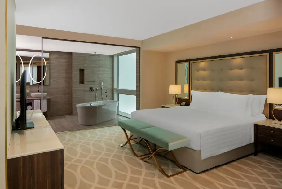 52 м2, полулюкс с одной спальней и кроватью king-size, отдельной зоной отдыха, панорамным видом на район Вест-Бэй и ванной комнатой.