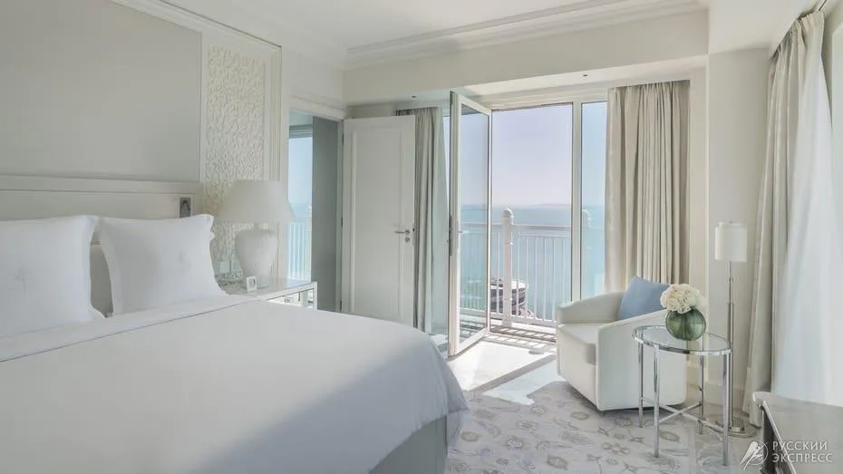 132 м2, балкон с видом на море, кровать king-size, гостиная, гардеробная. Максимальное количество гостей: 3.