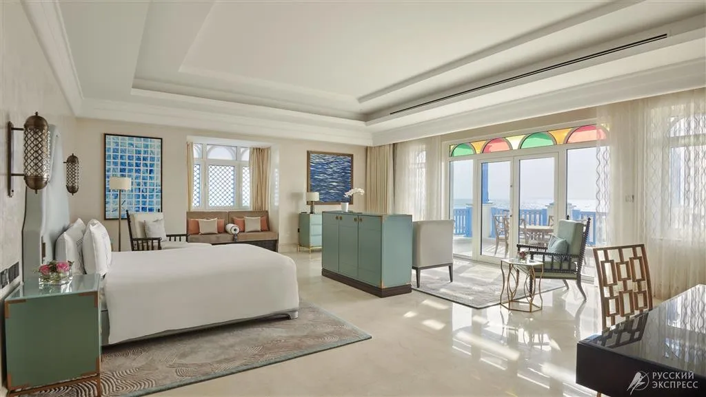136 м2, номер с видом на море, балконом, двумя спальнями, одной кроватью king-size, двумя односпальными кроватями и доступом в аквапарк Sea Caves. Максимальное количество гостей: 5.