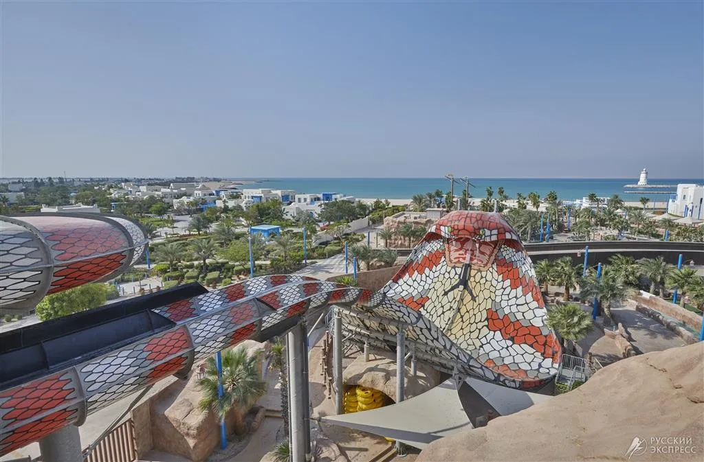На территории курорта находится один из крупнейших тематических парков на Ближнем Востоке – Desert Falls Water and Adventure Park, включающий аквапарк Sea Caves и зону аттракционов Desert Falls Adventures. Вход в аквапарк Sea Caves с 30 водными горками включен в стоимость проживания. Вход в зону аттракционов Desert Falls Adventures – за дополнительную плату.