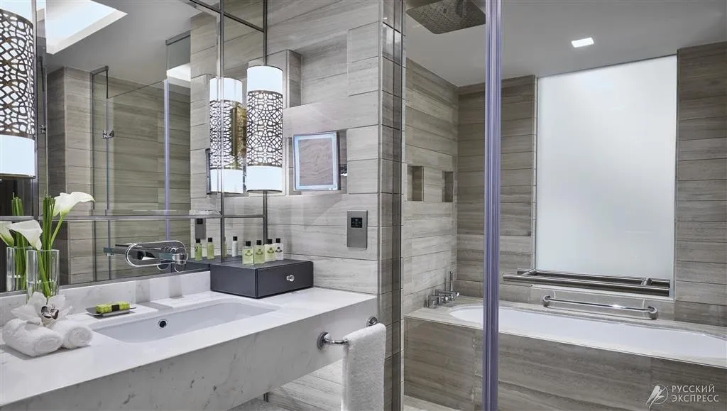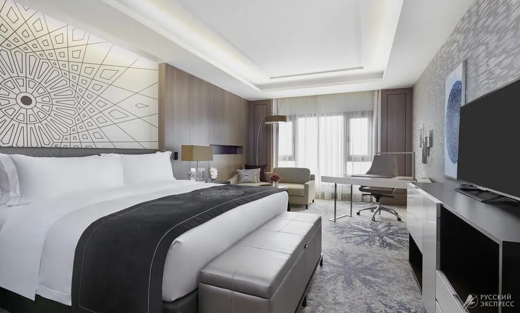 40 м2, доступ в лаундж, вид на культурную деревню Катара и центр Дохи, кровать king-size или две односпальные кровати, ванная комната.