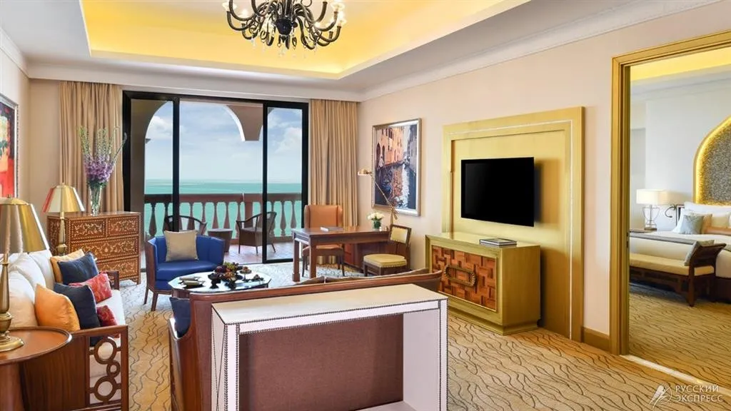 185 м2, балкон/ терраса с видом на Персидский залив. Одна кровать king-size. Возможно размещение детской и дополнительной кровати. Удобства: отдельная гостиная, гардеробная. Максимальное количество гостей: 5.