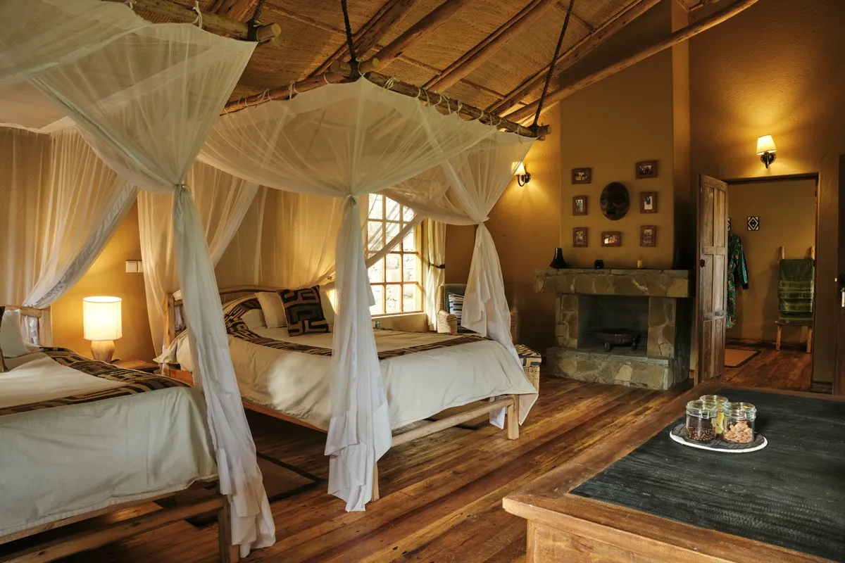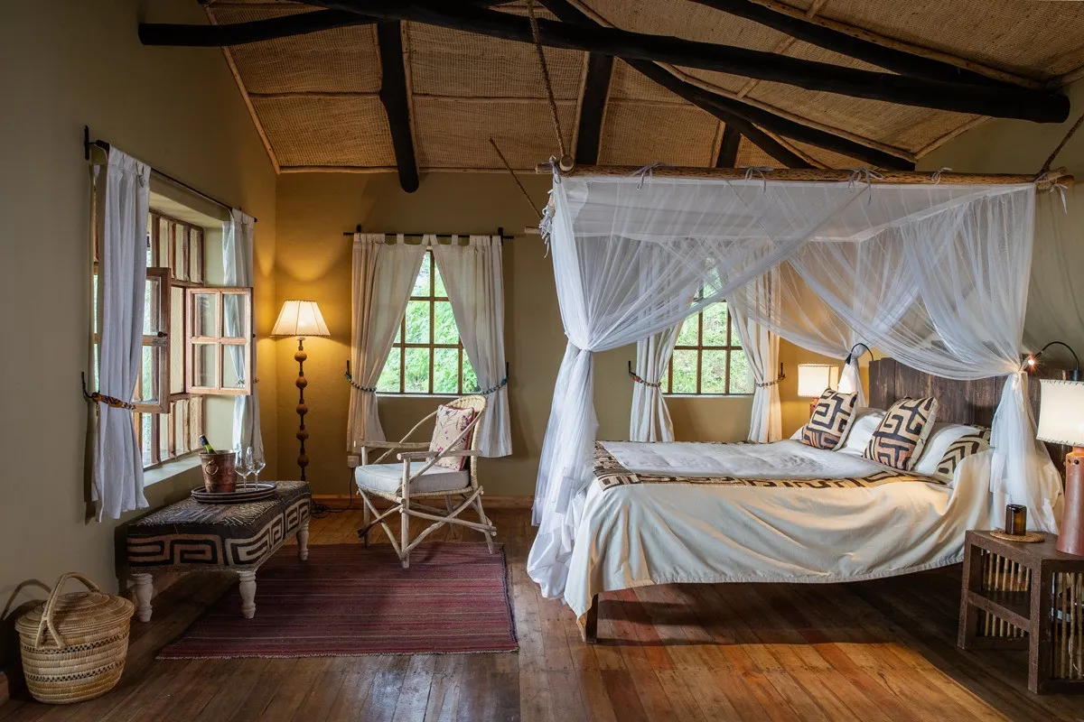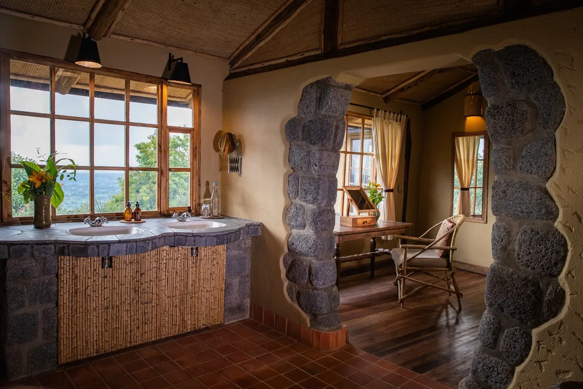 Virunga Lodge расположен высоко на хребте с потрясающим видом на вулканы Вирунга, долину Мусанзе, озера Булера и Руондо. Отель предлагает десять гостевых домиков ручной работы.
