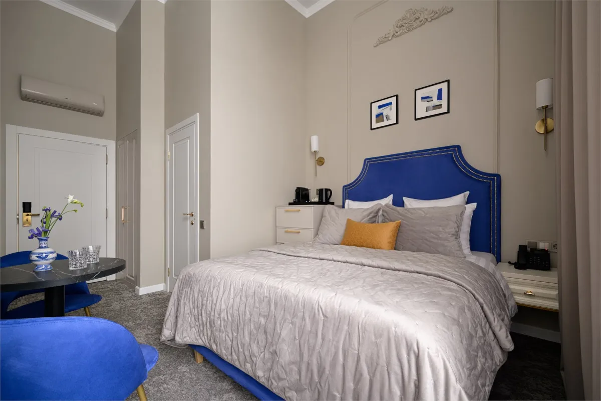 42 м2, исторический люкс соединил в себе уютную спальню, гостиную и рабочую зону. Дизайн выполнен в классическом стиле с сохраненными элементами исторического декора. Люкс является объектом культурного наследия. Количество гостей: до 2