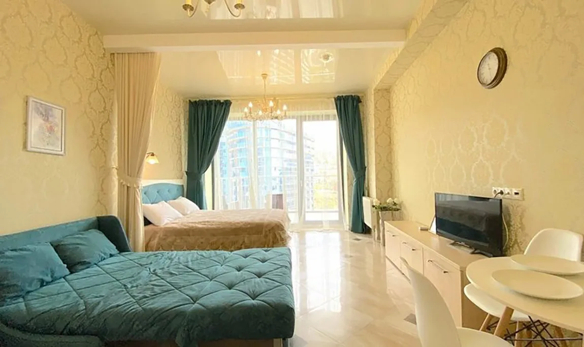 50 м2, с видом на город и частичным видом на море, кухня, диван раскладной, кровать двуспальная, терраса. 21 этаж. Количество гостей: 4