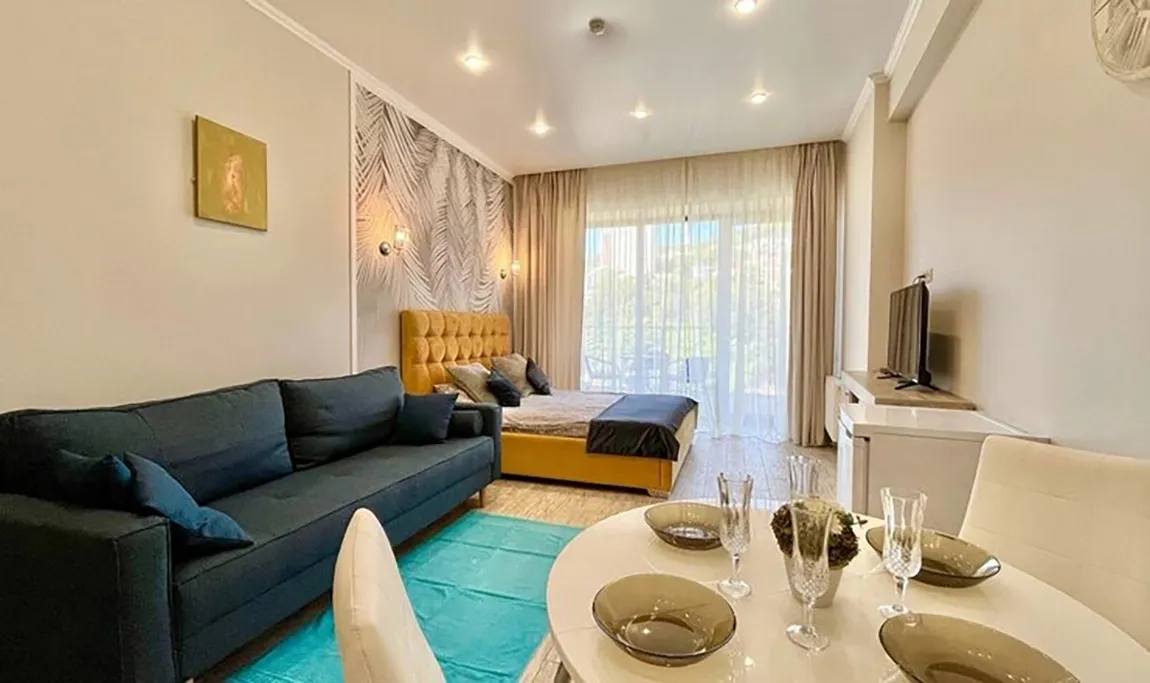 45 м2, с видом на город и частичным видом на море, кухня, диван раскладной, кровать двуспальная, терраса. 5 этаж. Количество гостей: 4