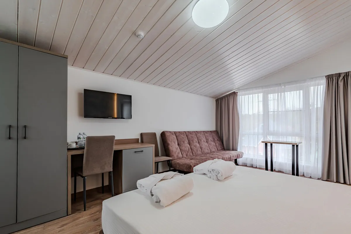 26 м2, двуспальная кровать, балкон. В качестве дополнительного места можно использовать раскладной диван. Количество гостей: 2