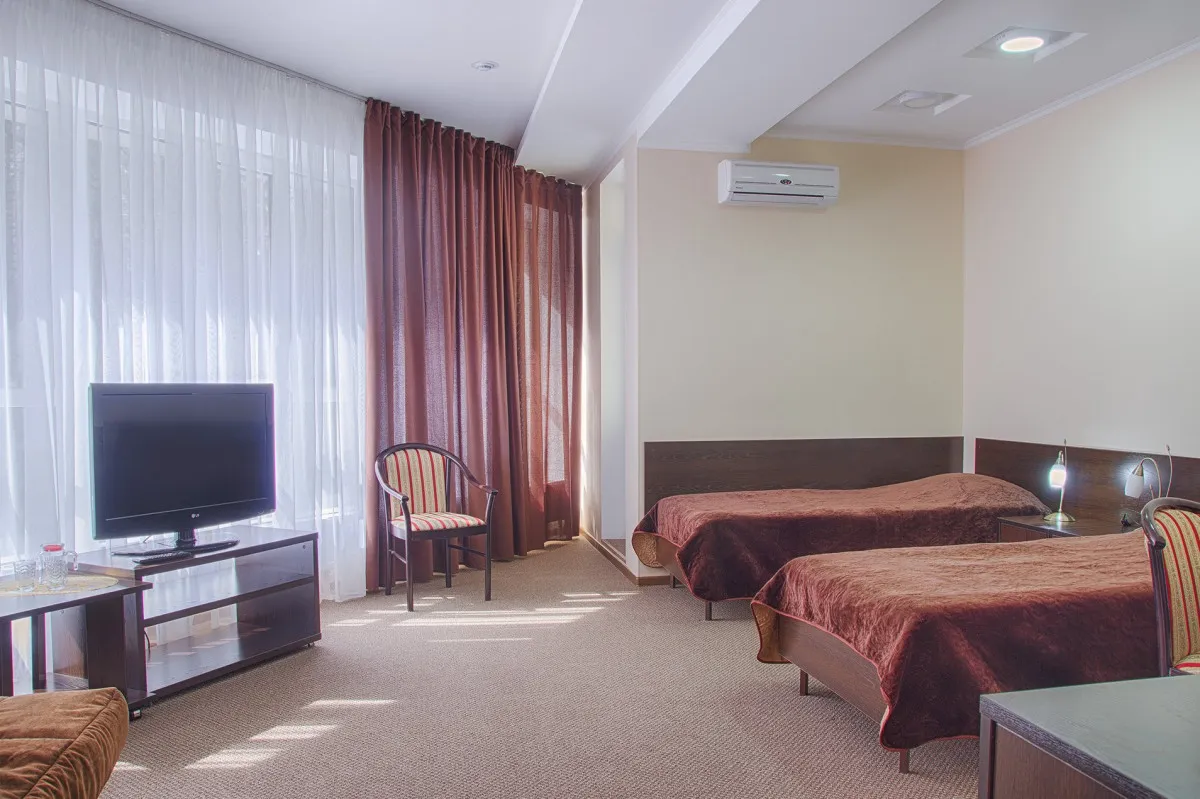 Санаторий состоит из двух корпусов, не соединенных переходом и расположенных друг от друга через пешеходную аллею: 6-этажного первого корпуса с лифтом, и 3-этажного второго корпуса на ул. Славского, д. 55.