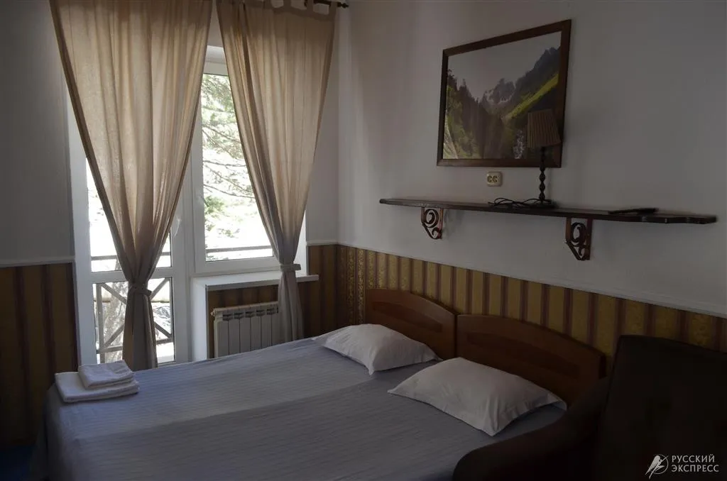 Отель «Балкария» построен в традиционном стиле и при этом оснащен всем необходимым для комфортного пребывания на курорте. Отель находится в удивительно красивом месте в конце Баксанского ущелья на поляне Азау на высоте 2300 метров над уровнем моря – прямо у подножья Эльбруса. На поляне Азау все в шаговой доступности – и канатные дороги, и отели расположены в радиусе 300 метров. Добраться до поселка Терскол (2,5 км) или поляны Чегет (3,5 км) можно на такси.