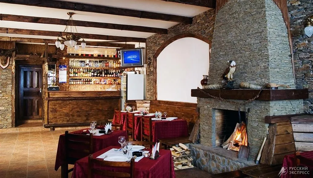 На первом этаже гостиницы «Балкария» находится кафе-ресторан в традиционном стиле с действующим камином - один из лучших в Приэльбрусье.
