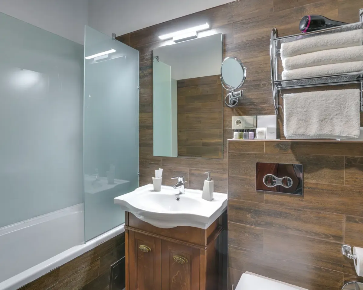 50 м2, две спальни (двуспальная кровать и две односпальные кровати), зона отдыха с диваном, рабочая зона. Количество гостей: 4