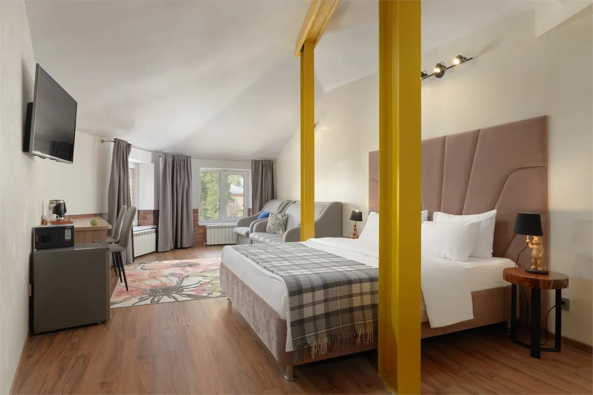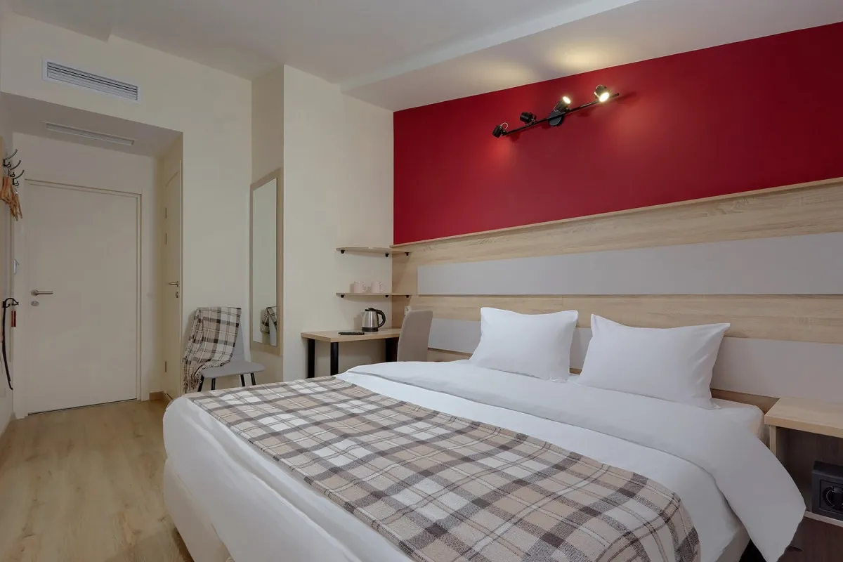 25 м2, двуспальная кровать, раскладной диван. Количество гостей: 3