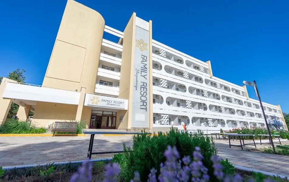 Отель Family Resort расположен в зеленой парковой зоне курортной части Евпатории в 150 м от набережной «Лазурная». У комплекса закрытая охраняемая территория с ухоженными аллеями и озеленением. Рядом находится популярные места отдыха и городская инфраструктура. На территории есть отдельный комплекс апартаментов «Апартаменты Family». Это отдельное здание из кирпича рядом с основной зоной отеля – 80 метров от главного корпуса и 10 метров от общей зоны. У здания отдельный вход, территория огорожена и охраняется.