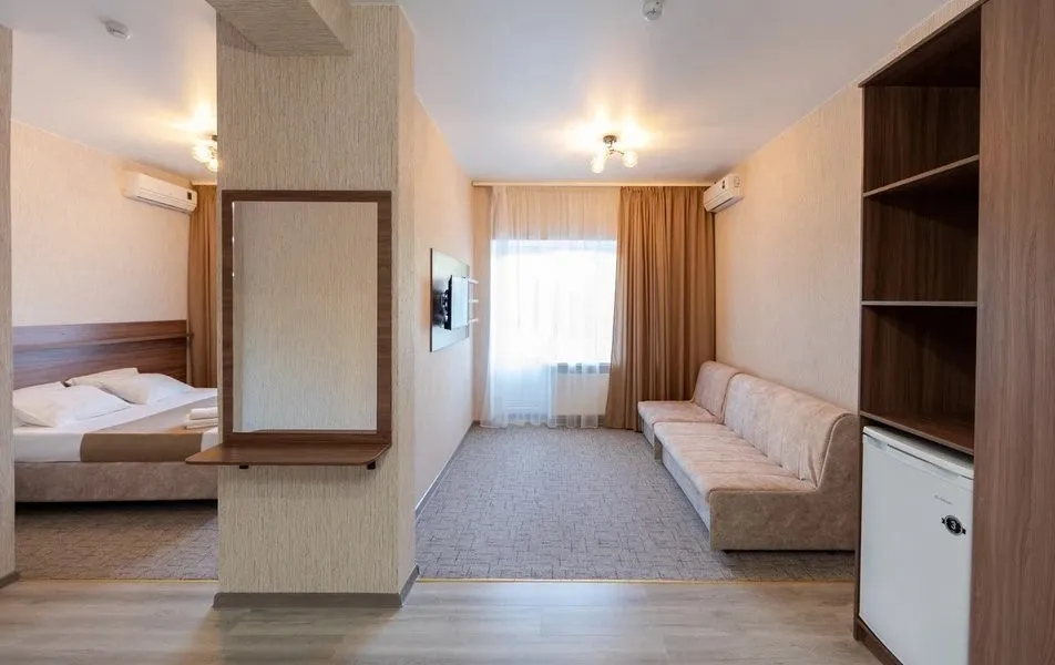24 м2, двухкомнатный номер, двуспальная кровать, дополнительное место – диван. Количество гостей: 2 основных + 2 дополнительных места