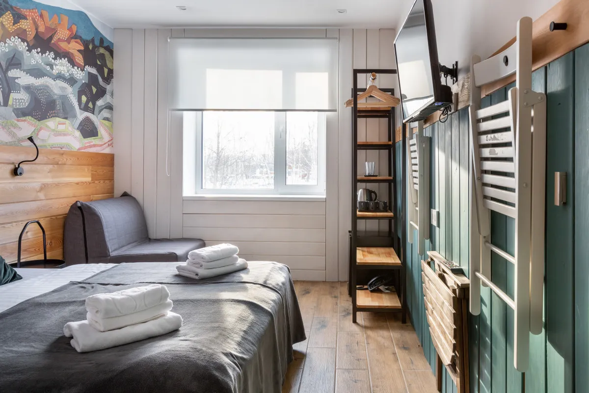 • 2 бассейна с горками для детей и взрослых (посещение бассейна аквацентра с 3 июня по 29 сентября для проживающих в гостинице за дополнительную плату)
