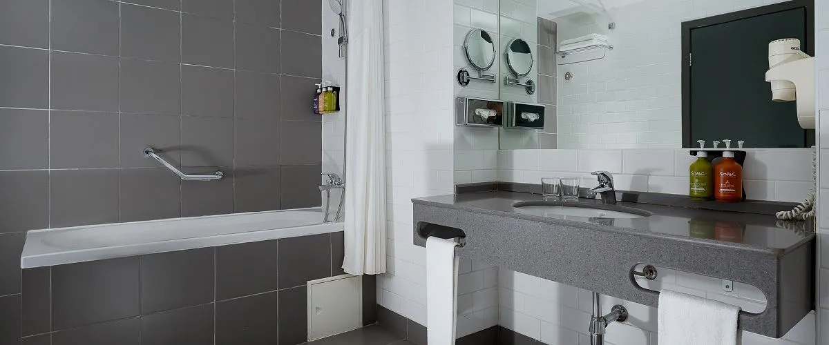 номер оснащен специальными поручнями в душе, дополнительными приспособлениями для унитаза и раковины. Количество гостей: до трех человек
