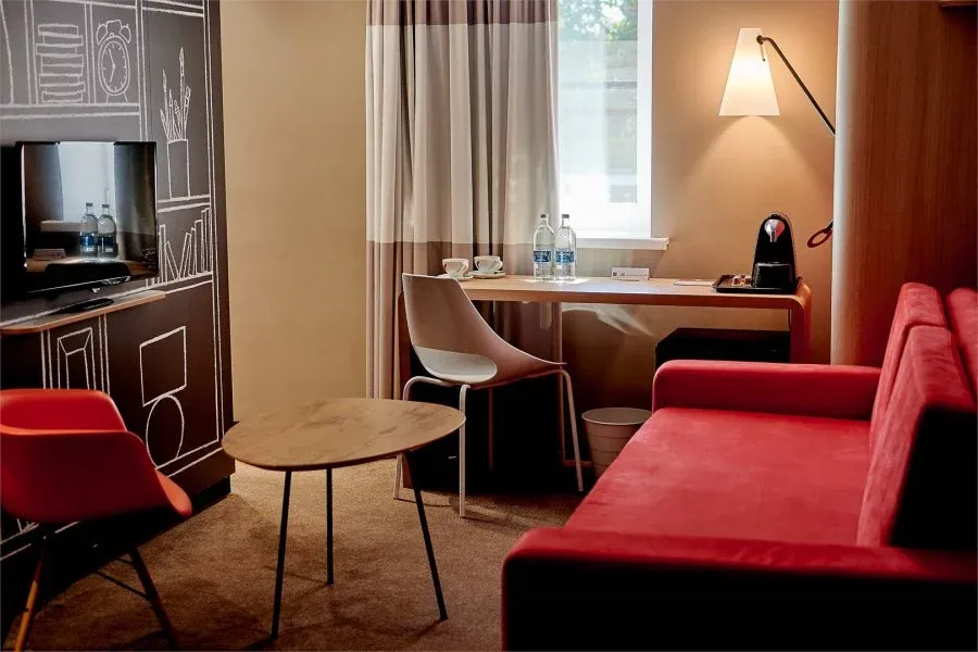 31 м2, боковой вид на город, двуспальная кровать, гостиная, диван-кровать. Количество гостей: 3 взрослых + 1 ребенок
