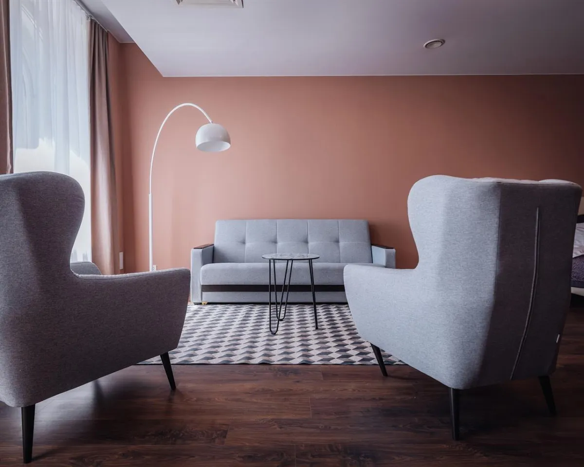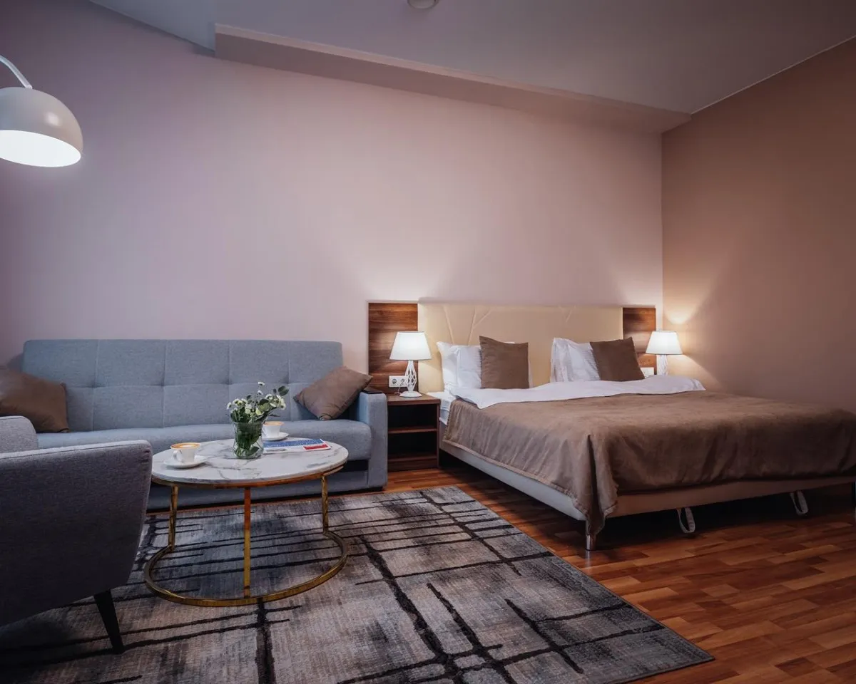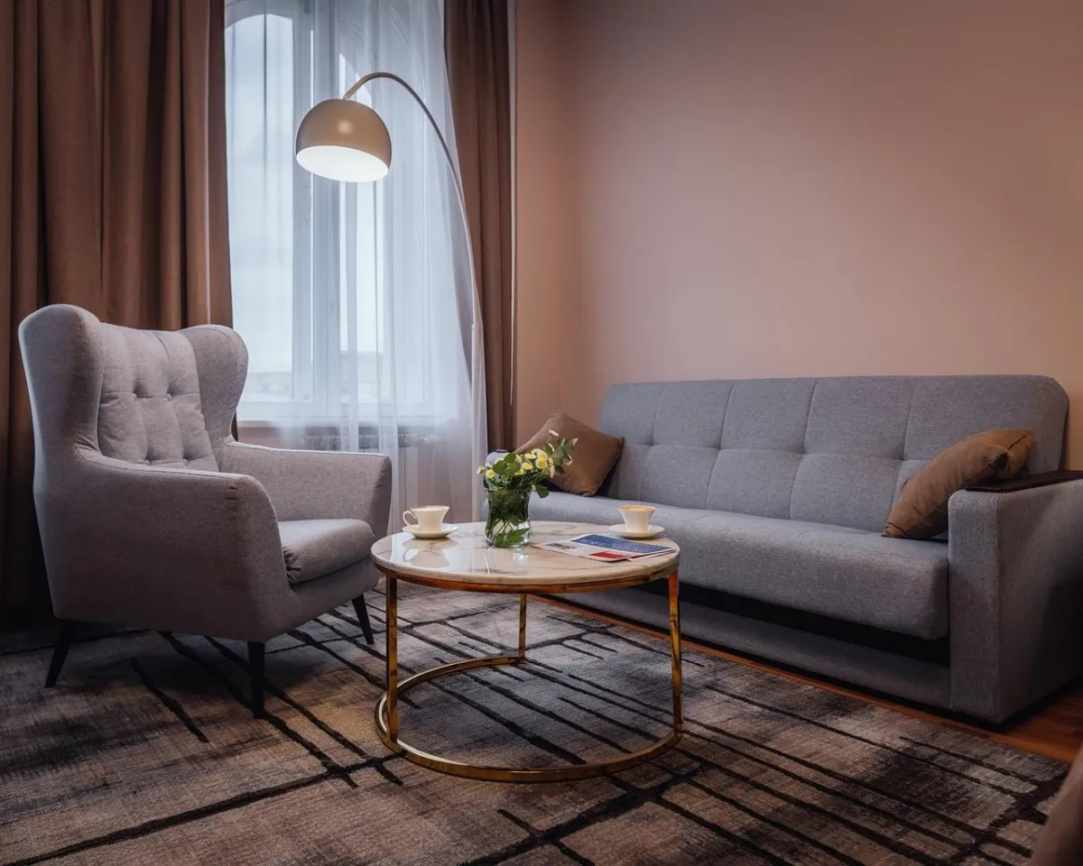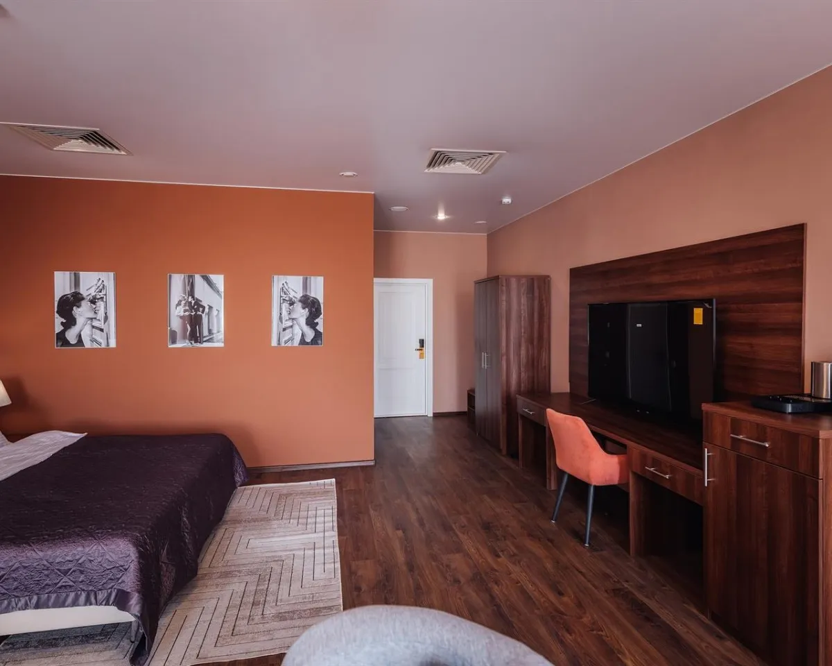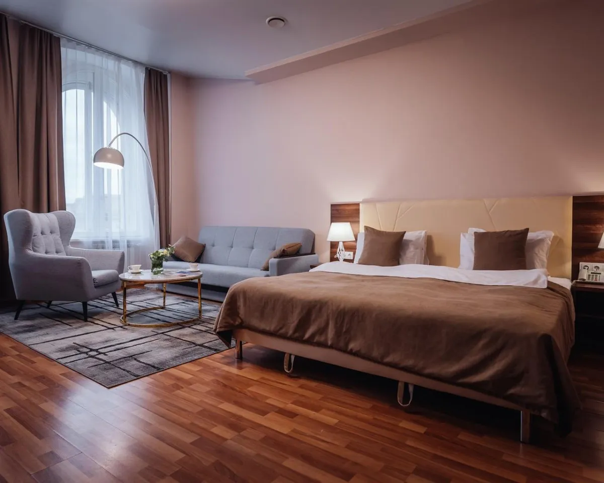 40-45 м2, вид на пешеходную зону улицы Малая Конюшенная, в номере есть уютная зона отдыха и рабочее место, кровать размером king-size. Количество гостей: до четырех человек