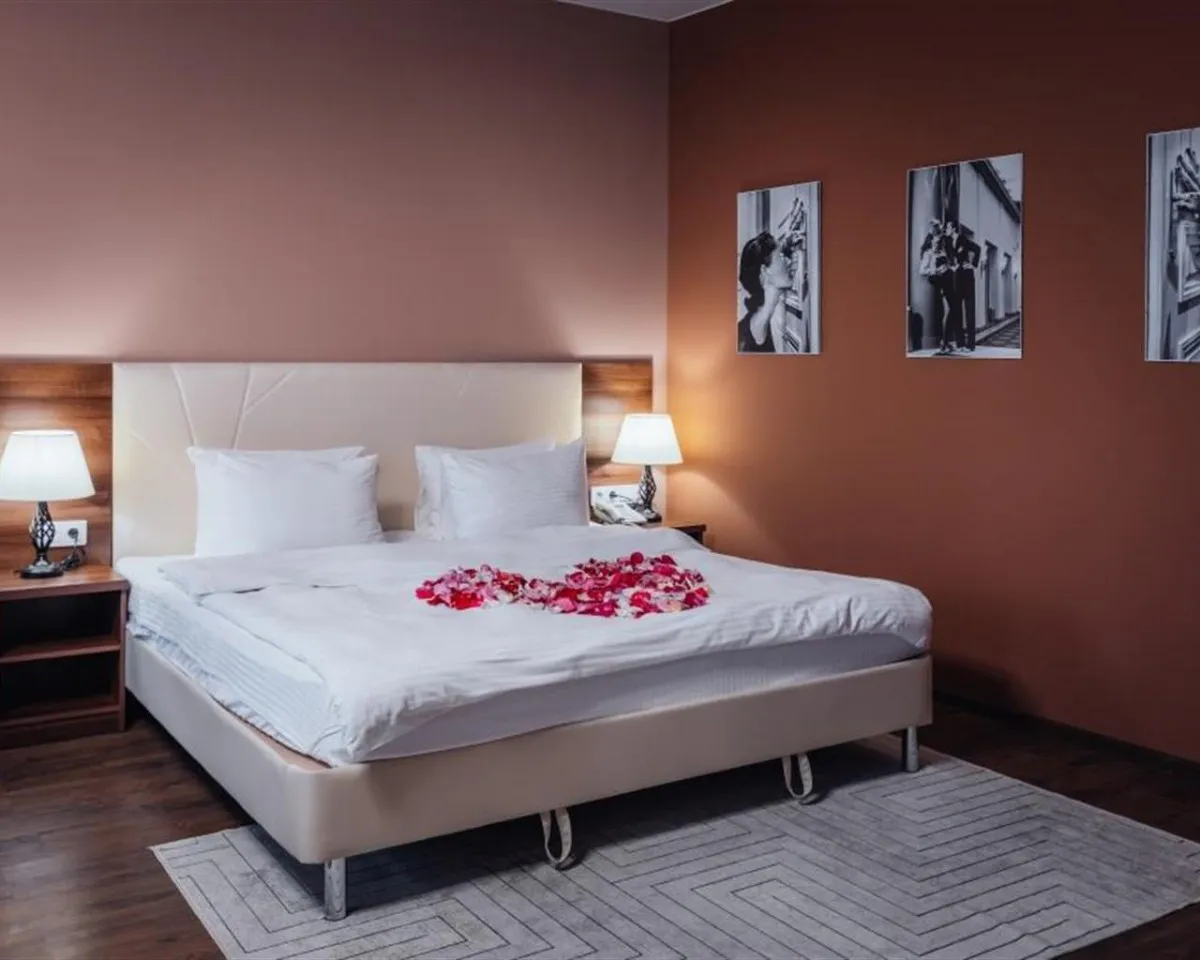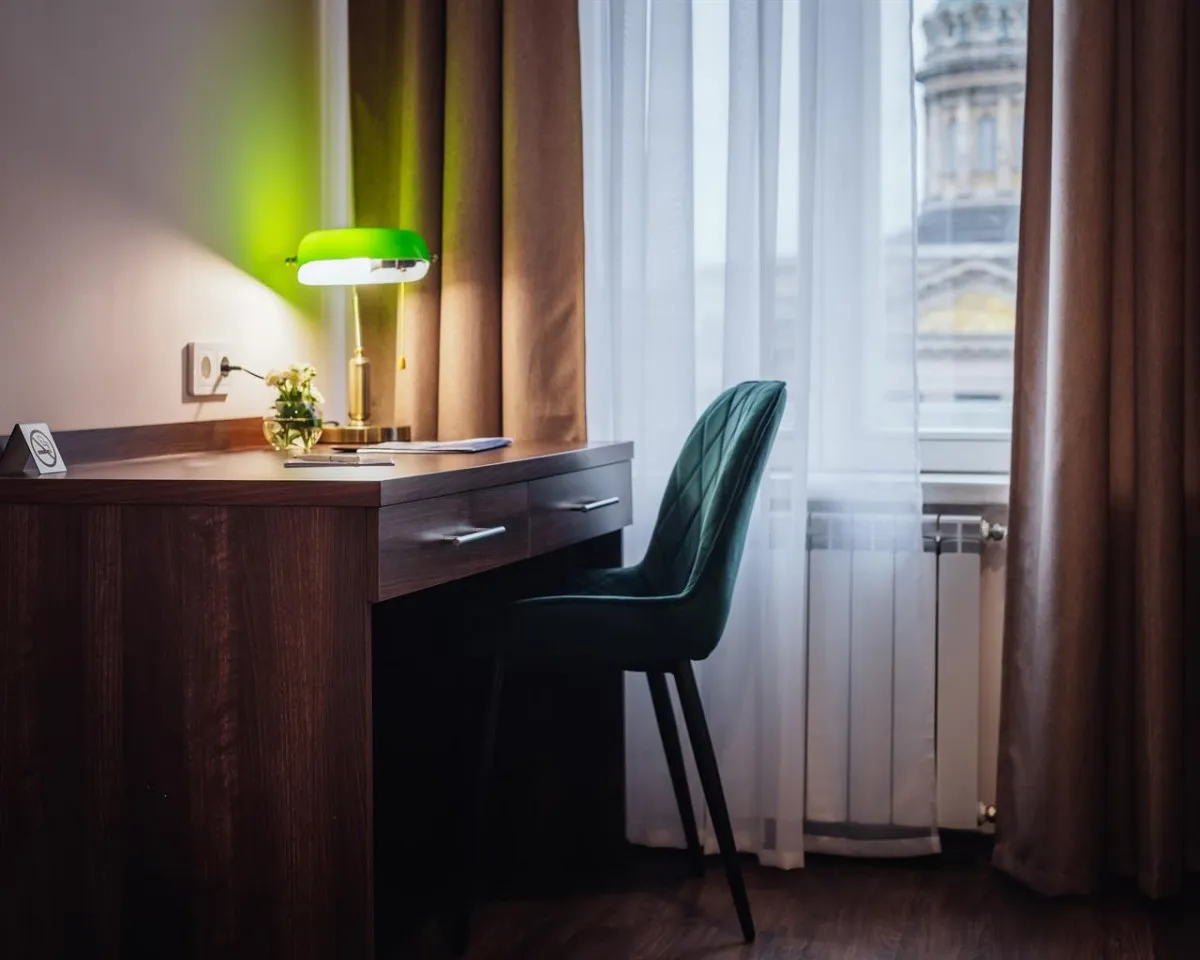 25 м2, вид на пешеходную зону Малой Конюшенной улицы, в номере одна кровать размером king-size или две односпальные кровати. Количество гостей: до трех человек