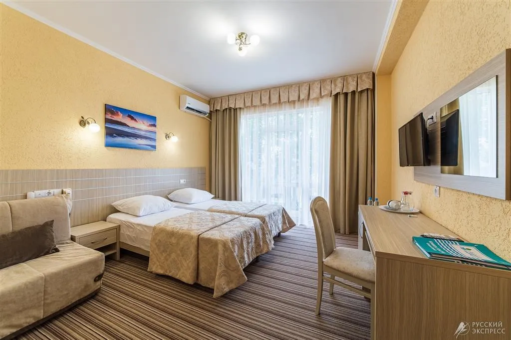 20 м2, в номере: две односпальные кровати, которые при необходимости объединяются в двуспальную с помощью топпера
