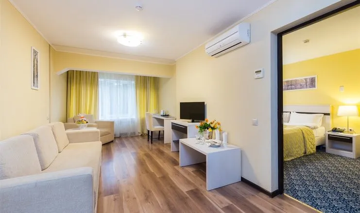 41 м2, спальня с двуспальной кроватью, гостиная с диваном (раскладной), совмещенный санузел с ванной и душем. Дополнительные удобства: кондиционер. Количество гостей: максимум 4