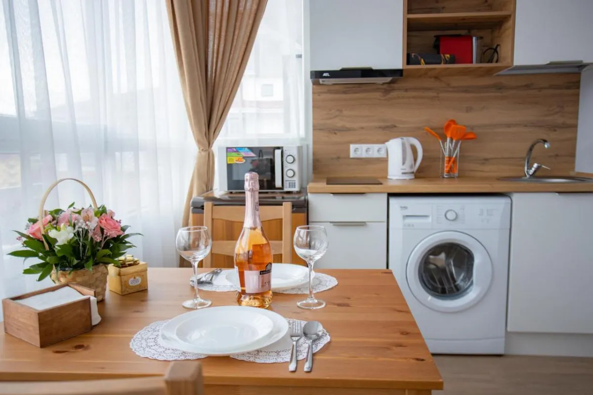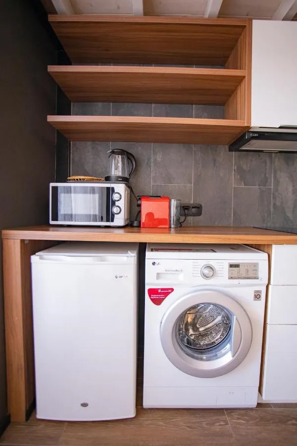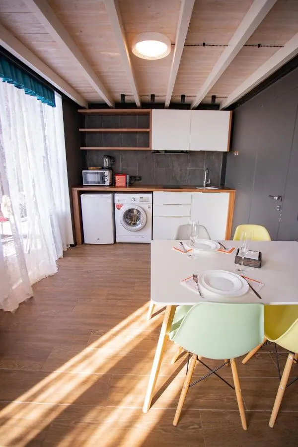 Пятиэтажный корпус, в котором разместились Апартаменты, возвышается на первой береговой линии. В номерах дизайнерский интерьер и есть все необходимое для комфортного пребывания. Все Апартаменты оснащены индивидуальным санузлом с ванной, собственной кухней, оборудованной посудой и бытовой техникой, также в номерах есть кондиционер, плазменный телевизор, а ванных комнатах — фен и наборы косметических принадлежностей для гостей.