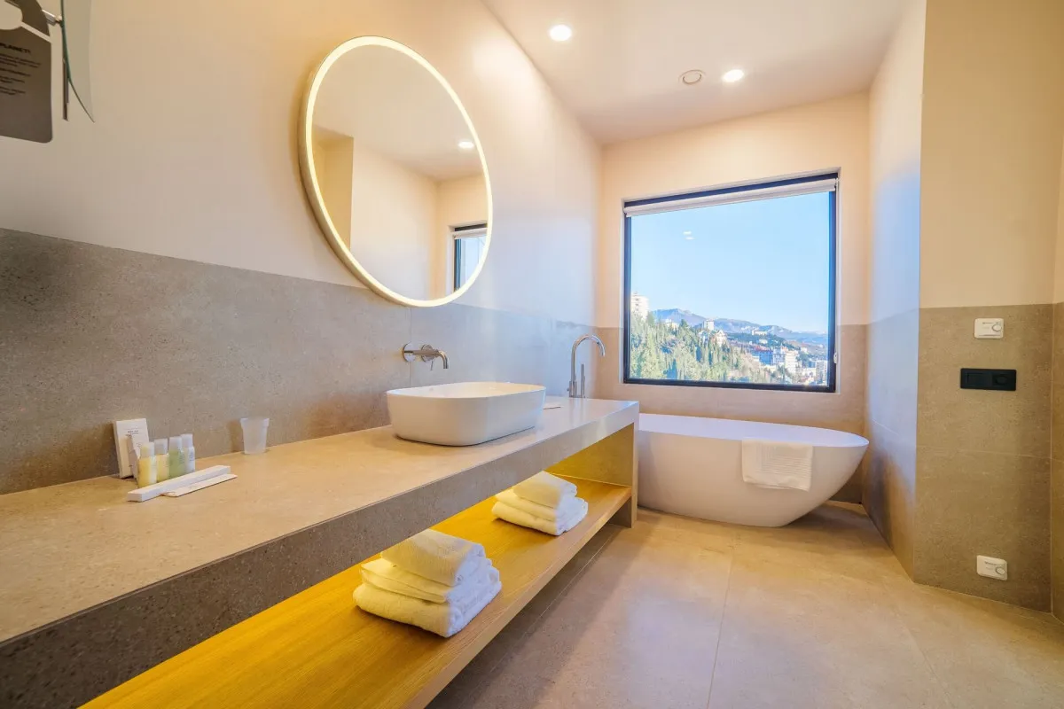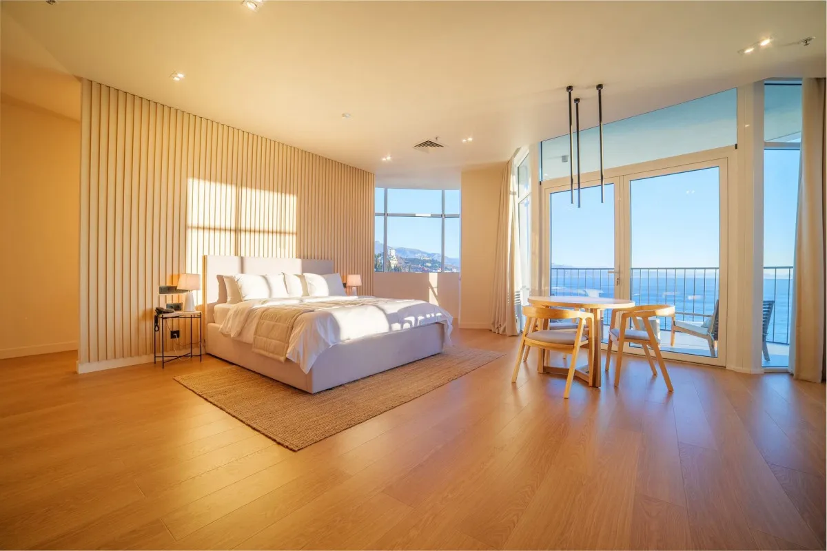 100 м2, однокомнатный номер с панорамным видом на море, две односпальные кровати, диван и кресла