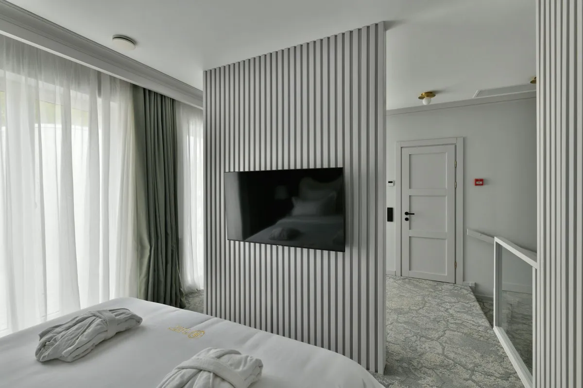 18-22 м2, спальня одной двуспальной или двумя раздельными кроватями, ортопедическим матрацем, просторная функциональная рабочая зона, ванная комната с душевой кабиной. Количество гостей: максимум 2