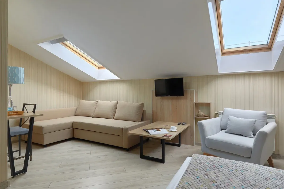 28 м2, двуспальная кровать или две односпальные кровати, диван. Количество гостей: максимум 2