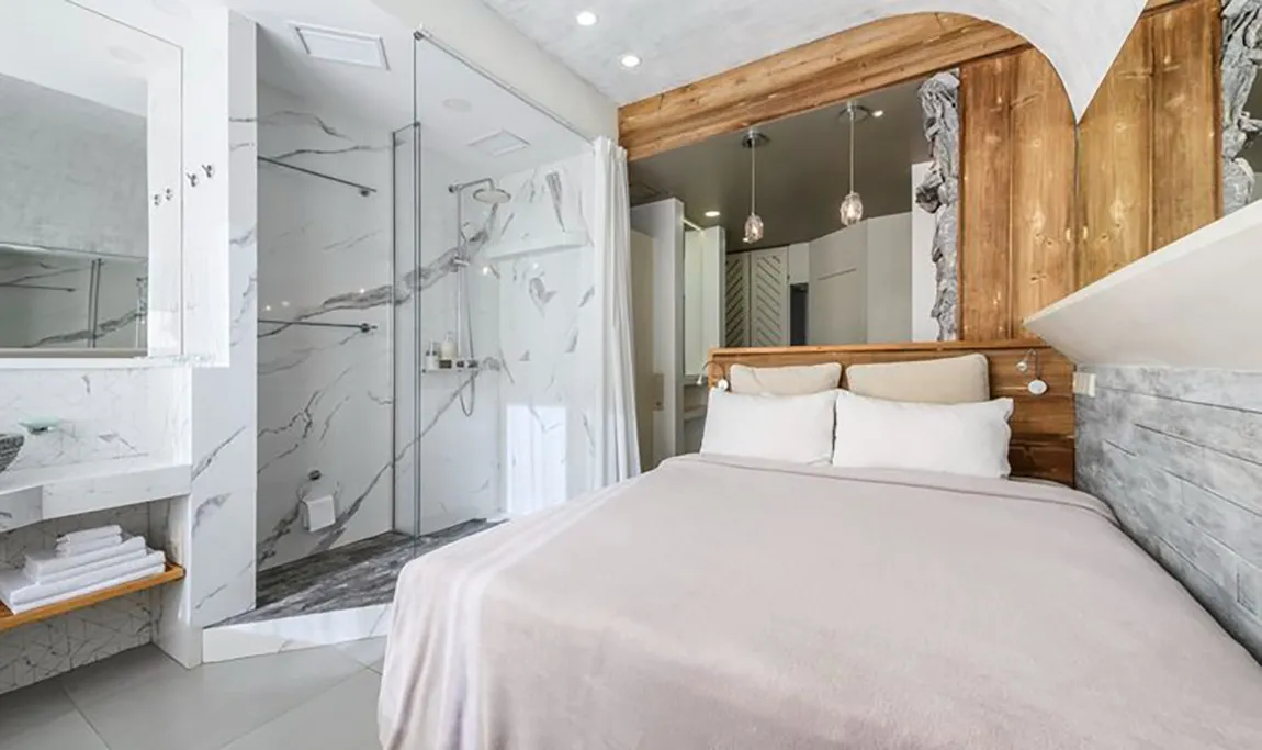 45 м2, с видом на горы, кровать двуспальная, диван раскладной, мини-кухня. Количество гостей: 4