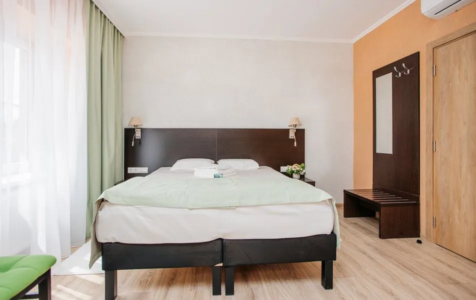 20 м2, две односпальные или двуспальная кровать. Дополнительное место – кресло-кровать, предоставляется без ограничений по возрасту. Количество гостей: 2 + 1