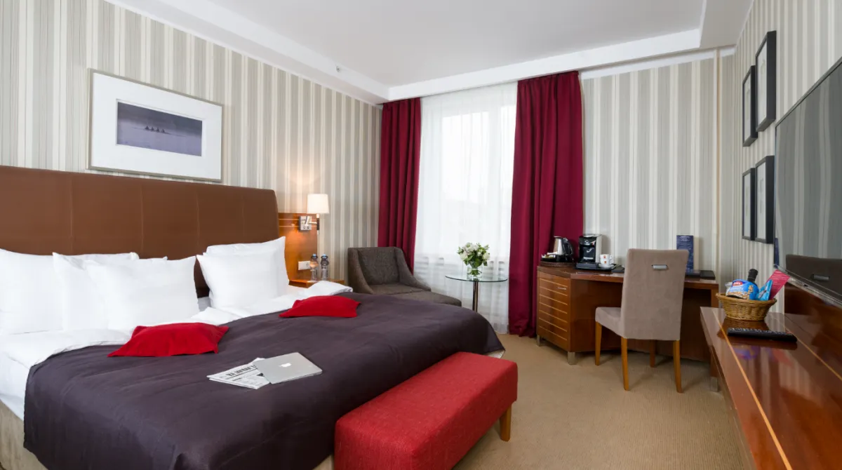 от 28 м2, одна двуспальная кровать, рабочее пространство. При необходимости в номере может быть установлена дополнительная кровать. Количество гостей: до 3