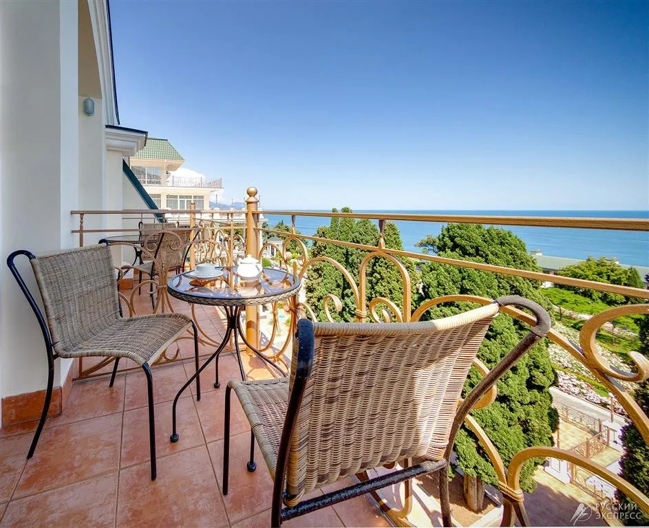 от 39 м2, вид на море, в номере, двуспальная кровать, двуспальный диван. Все номера этой категории расположены на 2-м этаже и выше, имеют балкон. Количество гостей: до 5 человек
