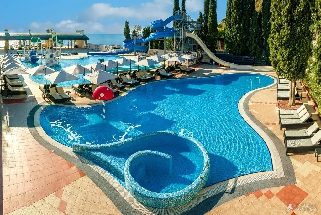 • детские зоны в открытых бассейнах, водные горки и аттракционы