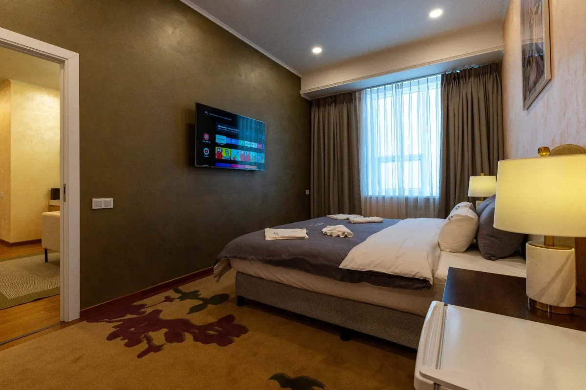 50 м2, вид на город, гостиная с зоной отдыха, спальня с двуспальной кроватью, гардеробная. Количество гостей: 2