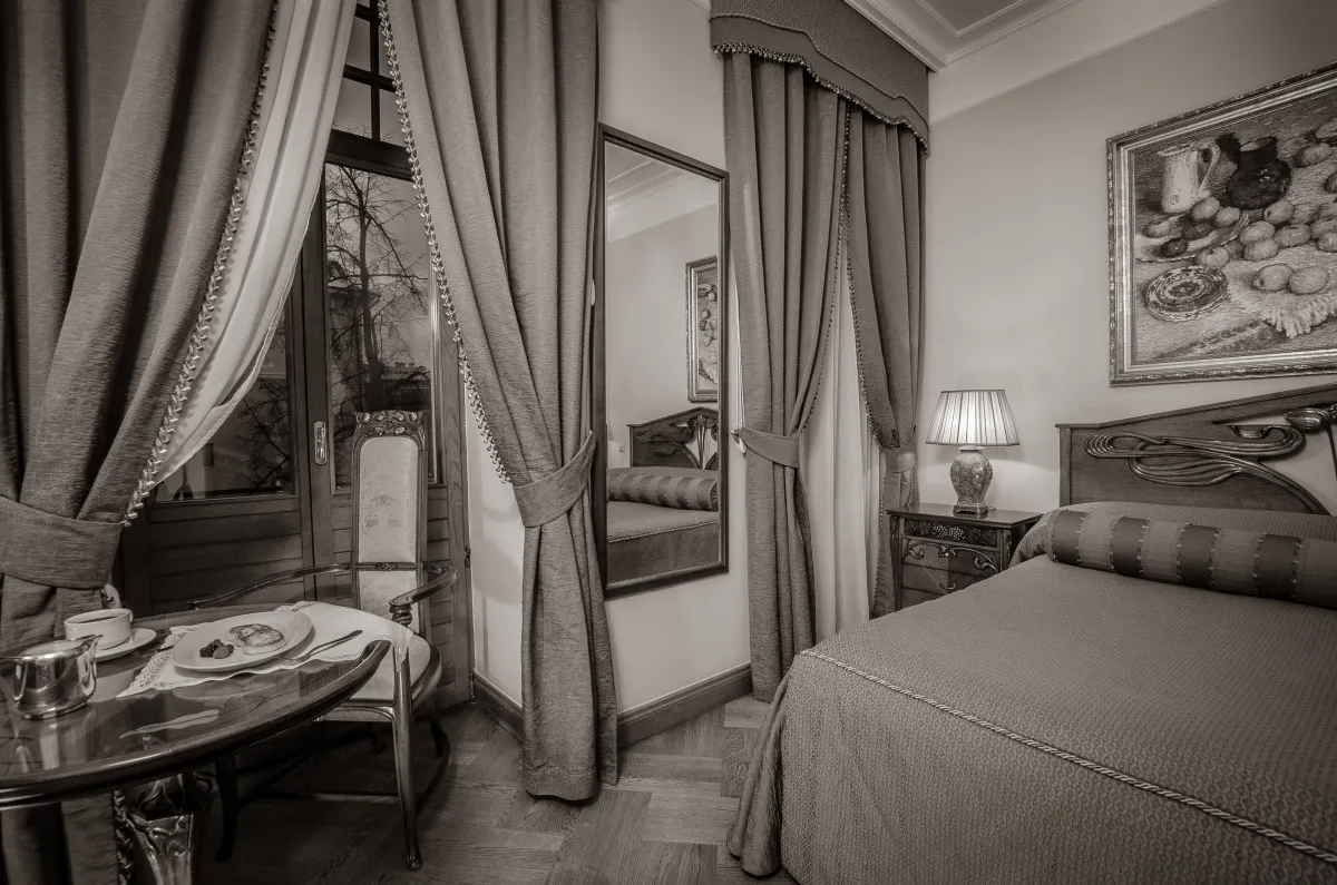 20 м2, вид на бульвар и сад, двуспальная кровать.