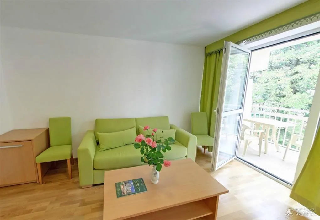 в 200 метрах от основной территории, собственный галечный пляж санатория протяженностью 500 метров. Соединен с основной территорией лифтом и подземным переходом. На пляже: аэрарий, лежаки, шезлонги, теневые беседки, душевые комнаты, пляжные зонты.