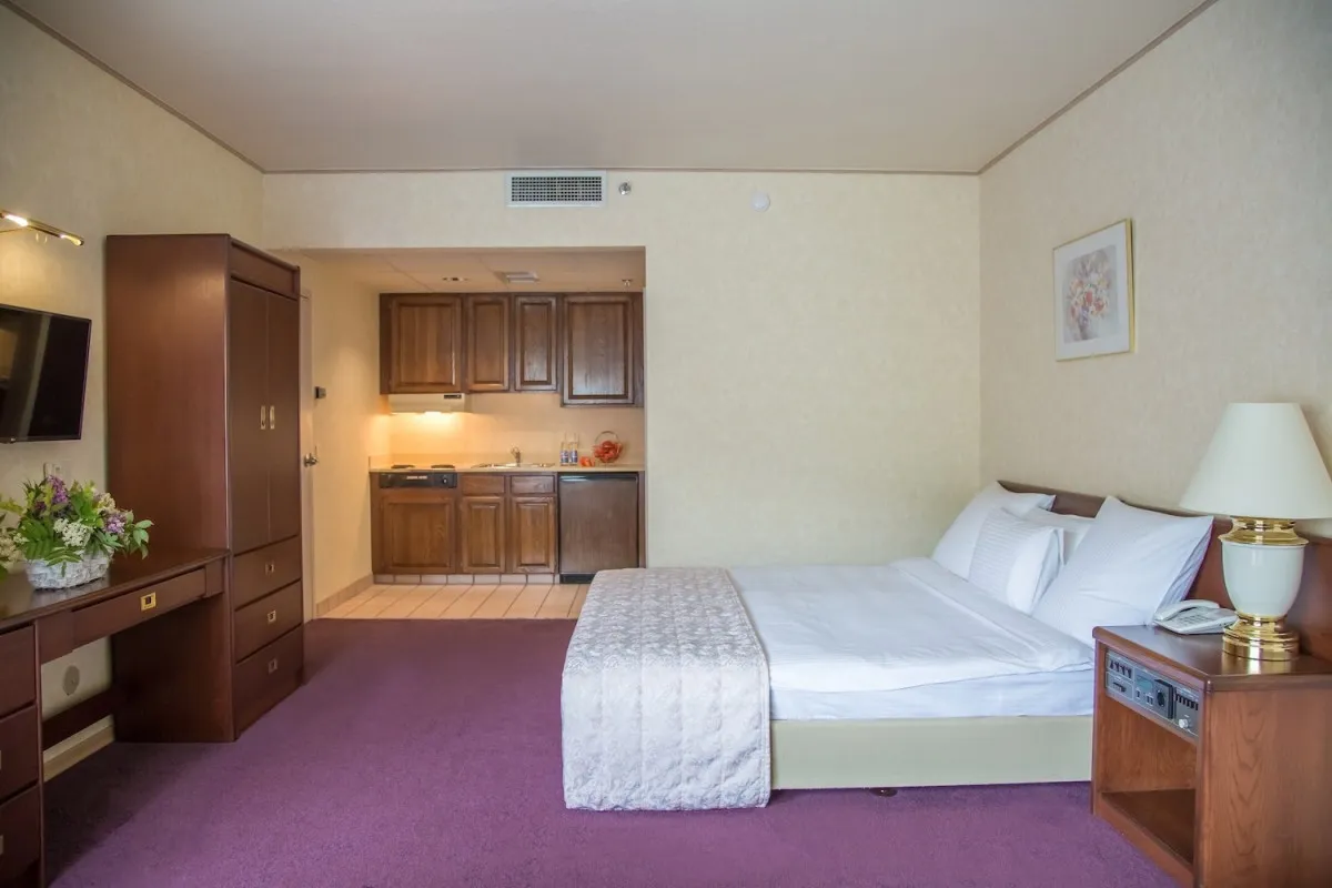 60 м2, с видом на Сахалинские сопки, гостиная, мини-кухня, два гардероба, два балкона, двуспальная кровать. Количество гостей: 3