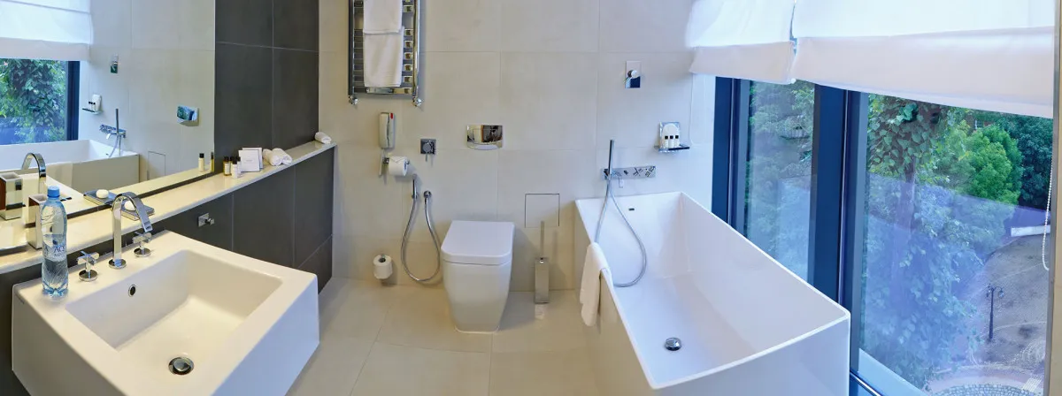 80 м2, вид на море и парк, номер с 2 отдельными спальнями с кроватями размера queen-size и раздвижными панорамными окнами, гостиной с софой и выходом на собственную меблированную террасу на крыше отеля и 2 ванными комнатами. Количество гостей: до 4