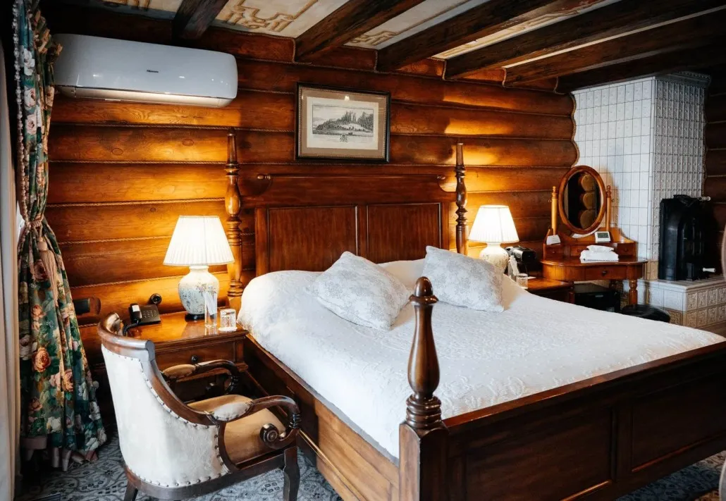 45 м2, балкон, двуспальная кровать, антикварный мини-бар, камин с литой топкой начала XIX века. Количество гостей: 2 + 1