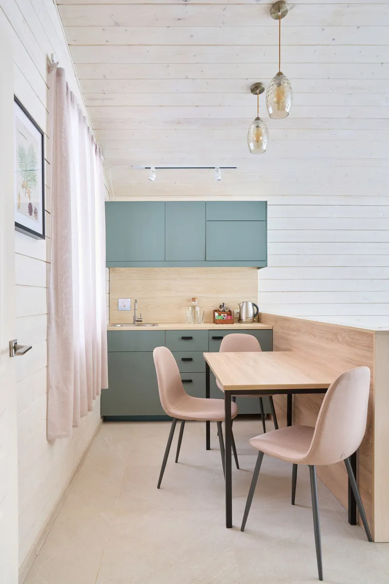 39 м2, спальня-лофт (двуспальная кровать или две односпальные кровати), гостиная с обеденной зоной, ванная комната с душевой кабиной. Количество гостей: максимум 2