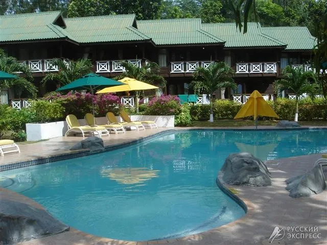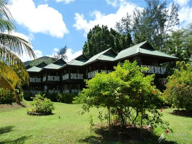 Отель расположен в центре одного из самых красивых заливов острова Прале Coco d’Or в парке казуарин и такамаковых деревьев, кустов гибискуса.