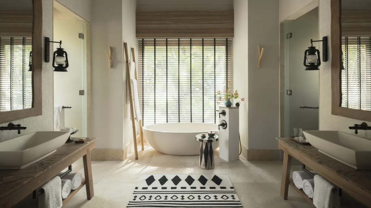 475 м2, вилла с двумя спальнями, двумя кроватями king-size и детской кроваткой, бассейном, частичным видом на океан, двумя ванными комнатами с отдельно стоящими мраморными ваннами и душем, а также душем и ванной на открытом воздухе. Максимальное количество гостей: 4 взрослых или 2 взрослых, 2 ребенка и 1 младенец.