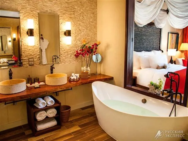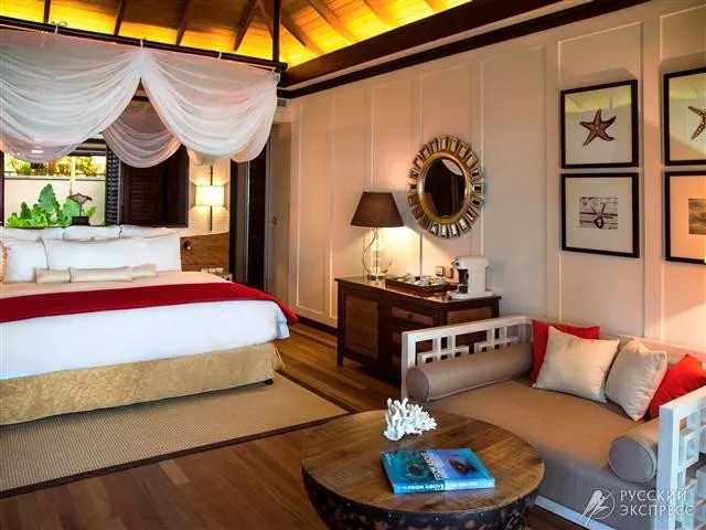400 м2, номер с двумя кроватями king-size, две гостиные, две ванные комнаты с ванной и тропическим душем, два частных бассейна, терраса с прямым выходом к пляжу. Максимальное количество гостей: 5 взрослых.