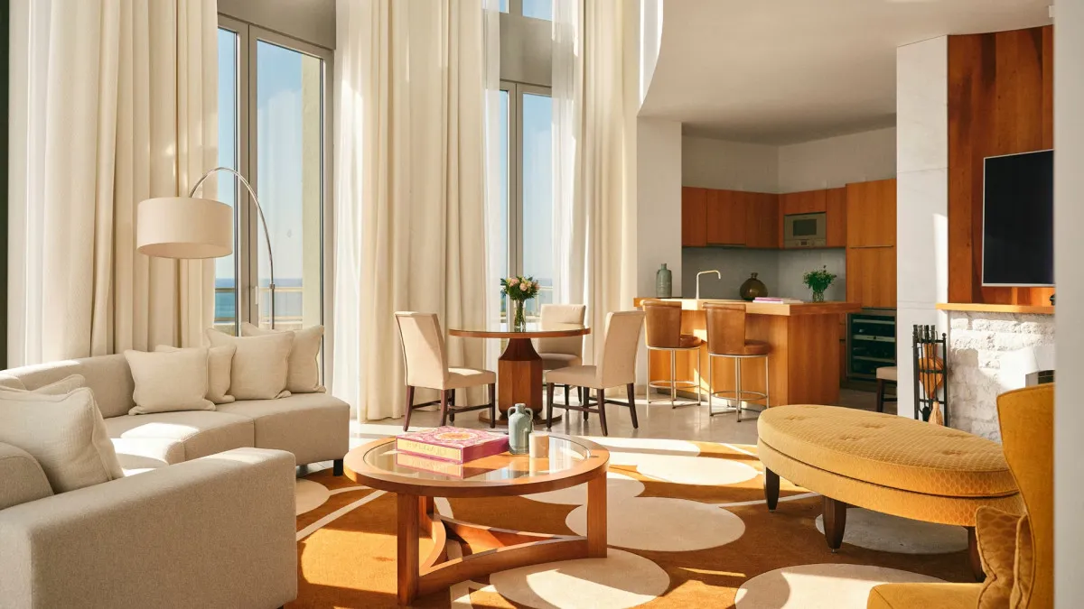 110 м2, 2-уровневый номер: терраса с джакузи и обеденной зоной на открытом воздухе, спальня с королевской двуспальной кроватью, гостиная, кухня. Количество гостей: 2