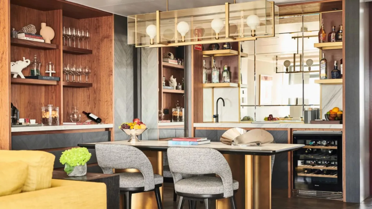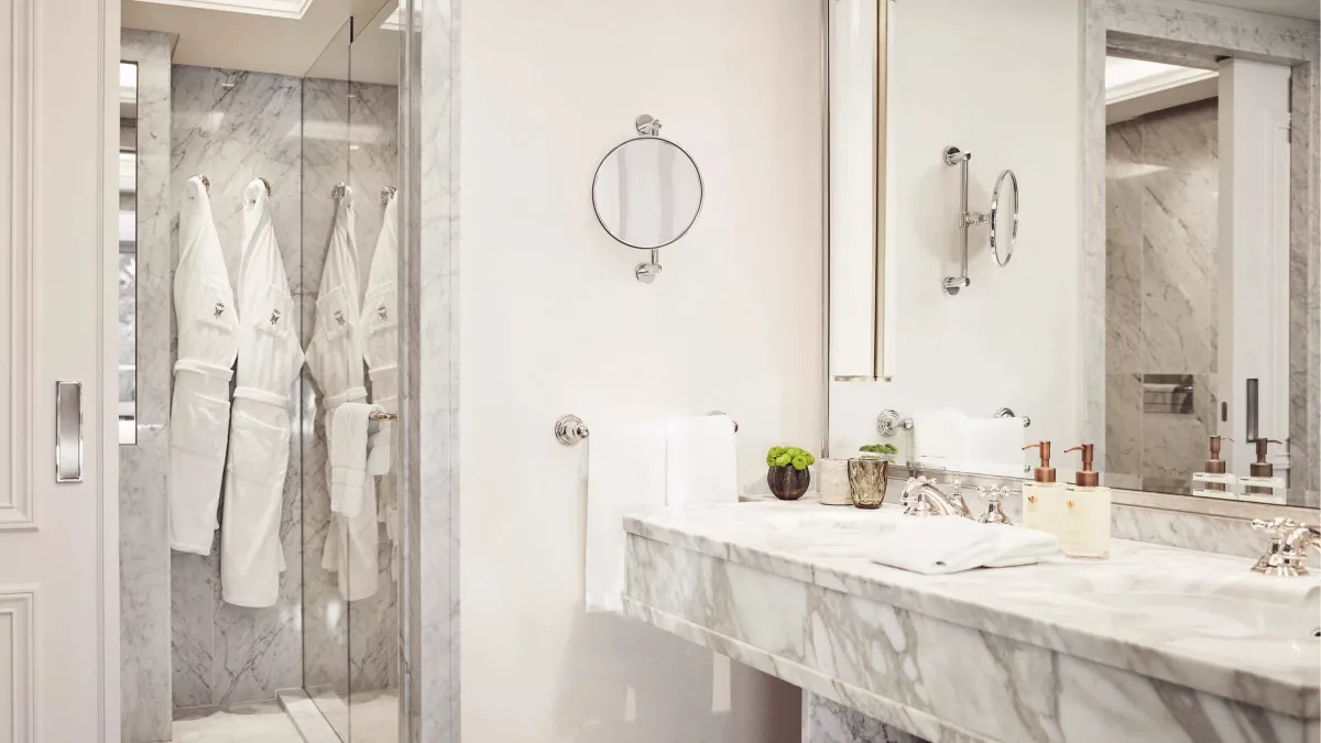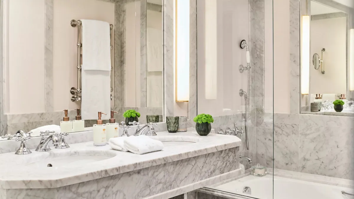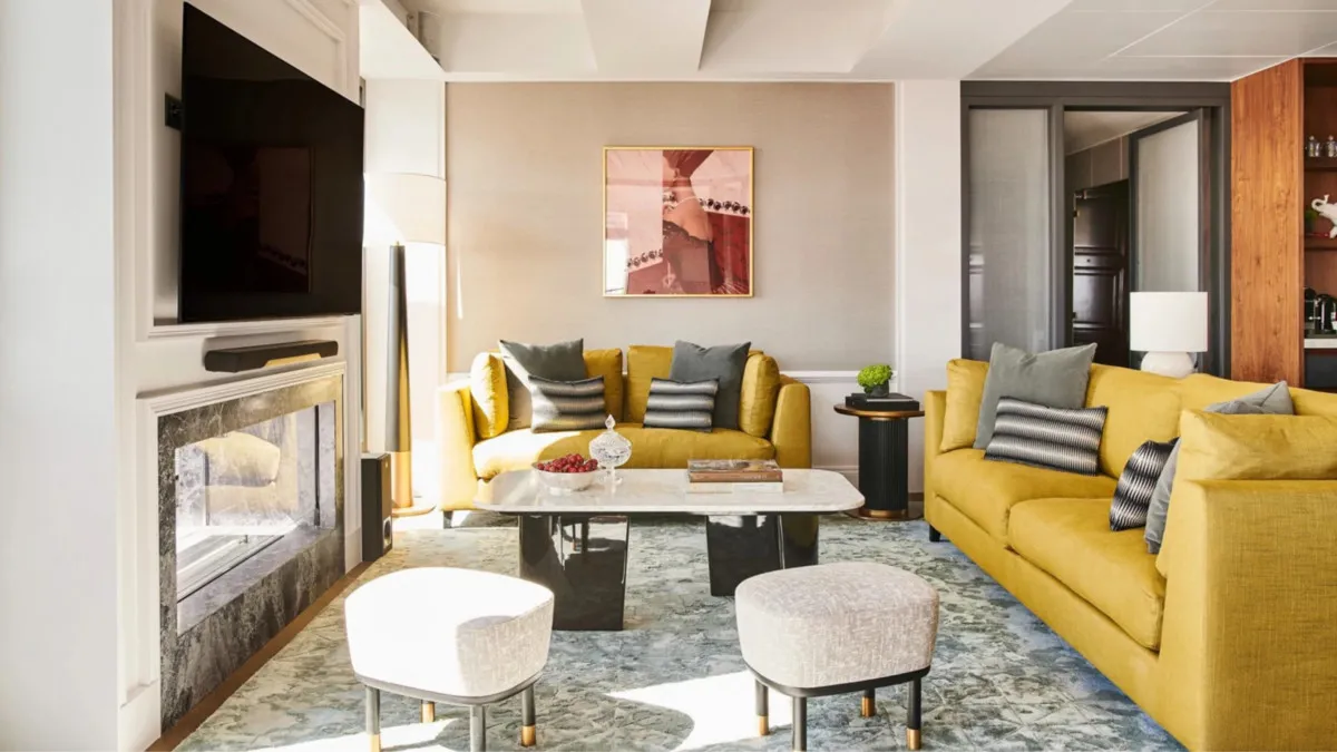 110 м2, вид на город, 1 двуспальная кровать + 1 диван-кровать/ 1 раскладная кровать (по запросу), гостиная и столовая, гардеробная, терраса, услуги дворецкого. Количество гостей: до 3