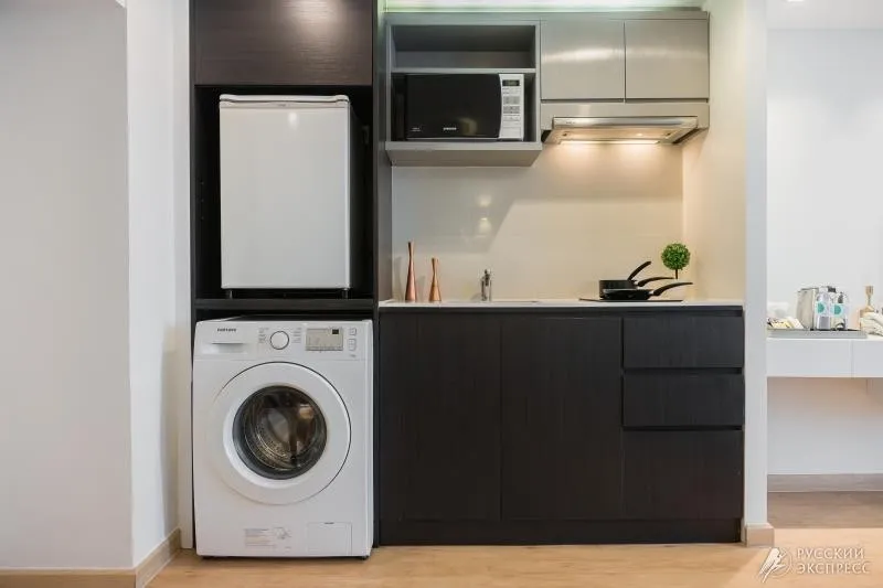 • мини-кухня с посудой и стандартной бытовой техникой