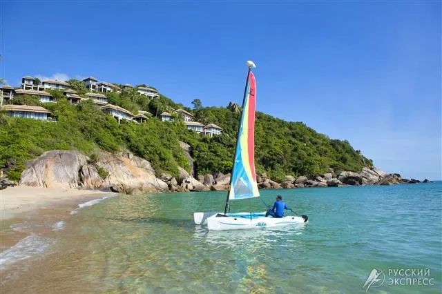 Роскошный отель для VIP клиентов, расположен  в живописной маленькой бухте в северной части пляжа Ламаи – с обеих сторон она окружена скалами и крупными валунами самых причудливых форм, а в самой бухте клиентов ждет уютный пляж с белоснежным песком и удобным заходом в воду. С reception отеля открывается красивейший вид  на бухту с прозрачной изумрудной водой и окружающие ее высокие скалы. Отель полностью состоит из вилл, расположенных на склоне зеленого холма – все виллы состоят минимум из 2 комнат (гостиная и спальня, разделенные раздвижной дверью), имеют частные бассейны размером 35 кв. м (самые большие на острове) и зону отдыха у бассейна с зонтиками и мягкими диванами вместо стандартных лежаков.  Высокие потолки (более 3 м) и панорамные окна с красивейшими видами создают ощущение огромного пространства, полного воздуха и солнца, ванная комната поражает размерами и также имеет большое окно с панорамным видом на сад или море. При этом дизайн номеров выдержан в теплых тонах и создан с использованием лучших пород местного дерева, традиционного тайского шелка и хлопка высочайшего качества, а их украшением являются искусные росписи по батику, деревянные скульптурки и другие декоративные мелочи в национальном стиле.